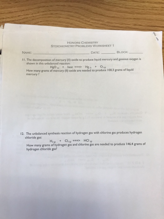 Honors Chemistry Stoichiometry Problems Worksheet 1 Chegg Com
